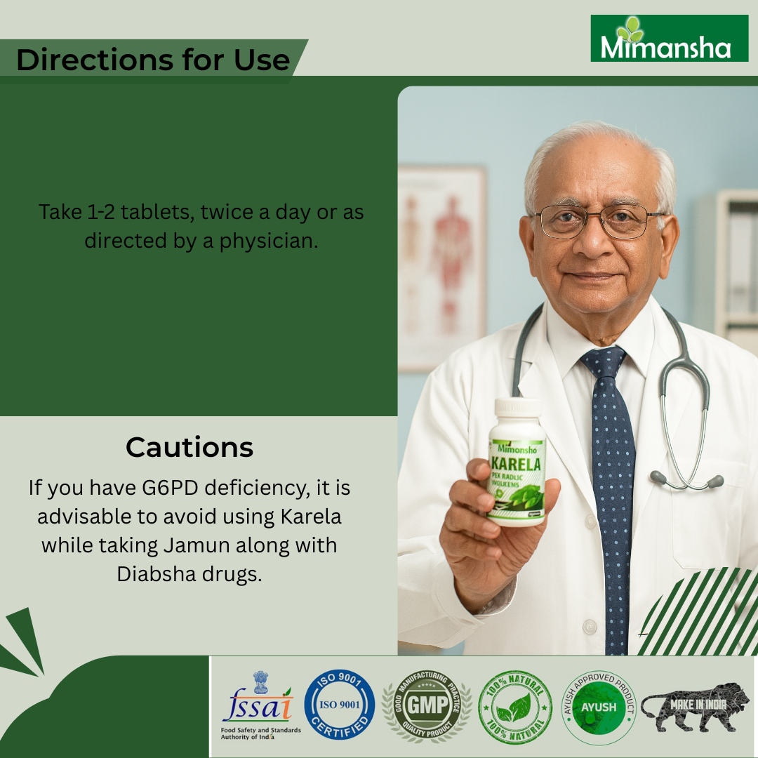 Safety Information:- while taking Jamun along with antidiabetic drugs it is better to avoid using karela if you have G6PD deficiency.
