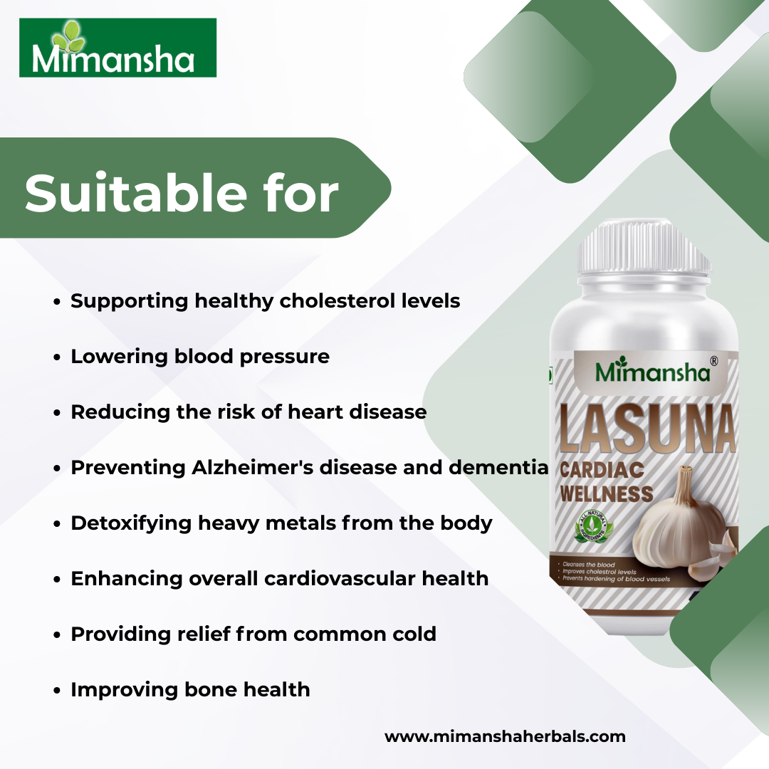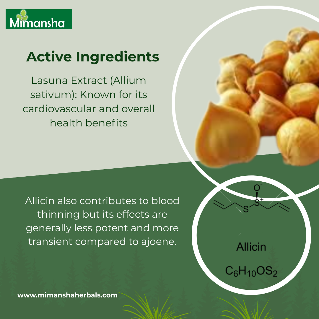 It helps prevent the hardening of blood vessels, lowers plasma lipid levels, cholesterol and has antioxidant properties. Also effective in preventing blood clots due to platelet aggregation and normalizes blood flow in the arteries.