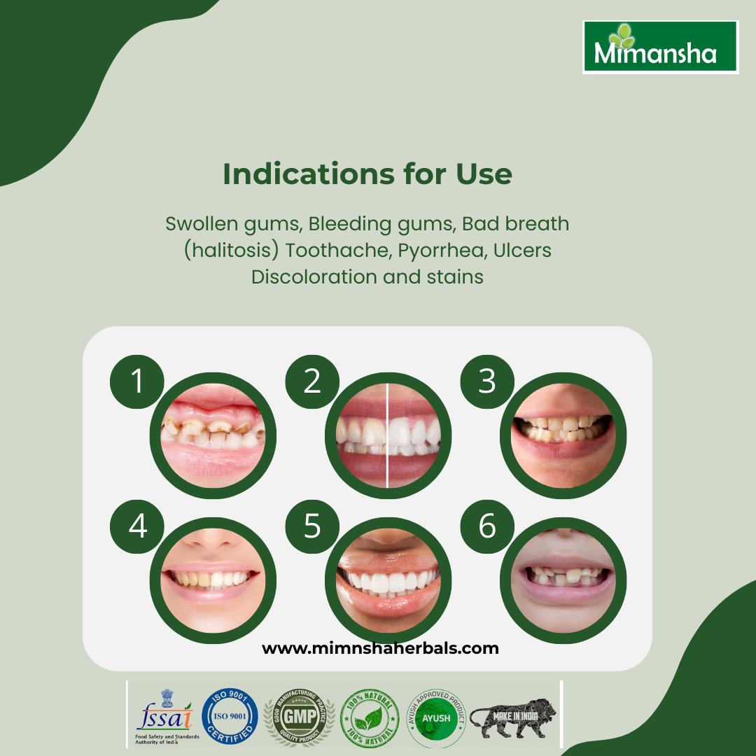 How to Use:- Half a teaspoonful of Mi-oral powder to be rubbed on the gums and teeth with the help of a soft brush or the finger and to be left for about 5 minutes. Use it twice a day, every day.