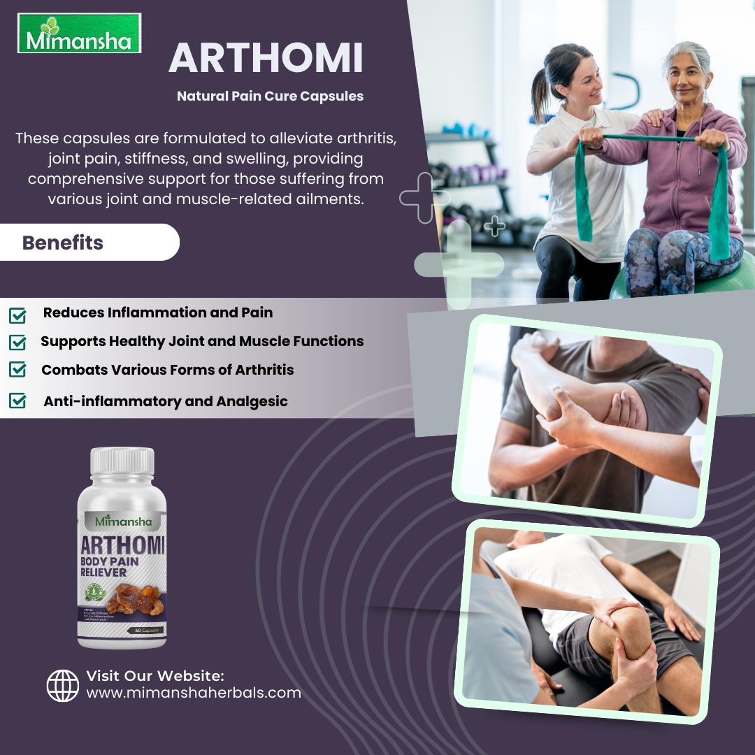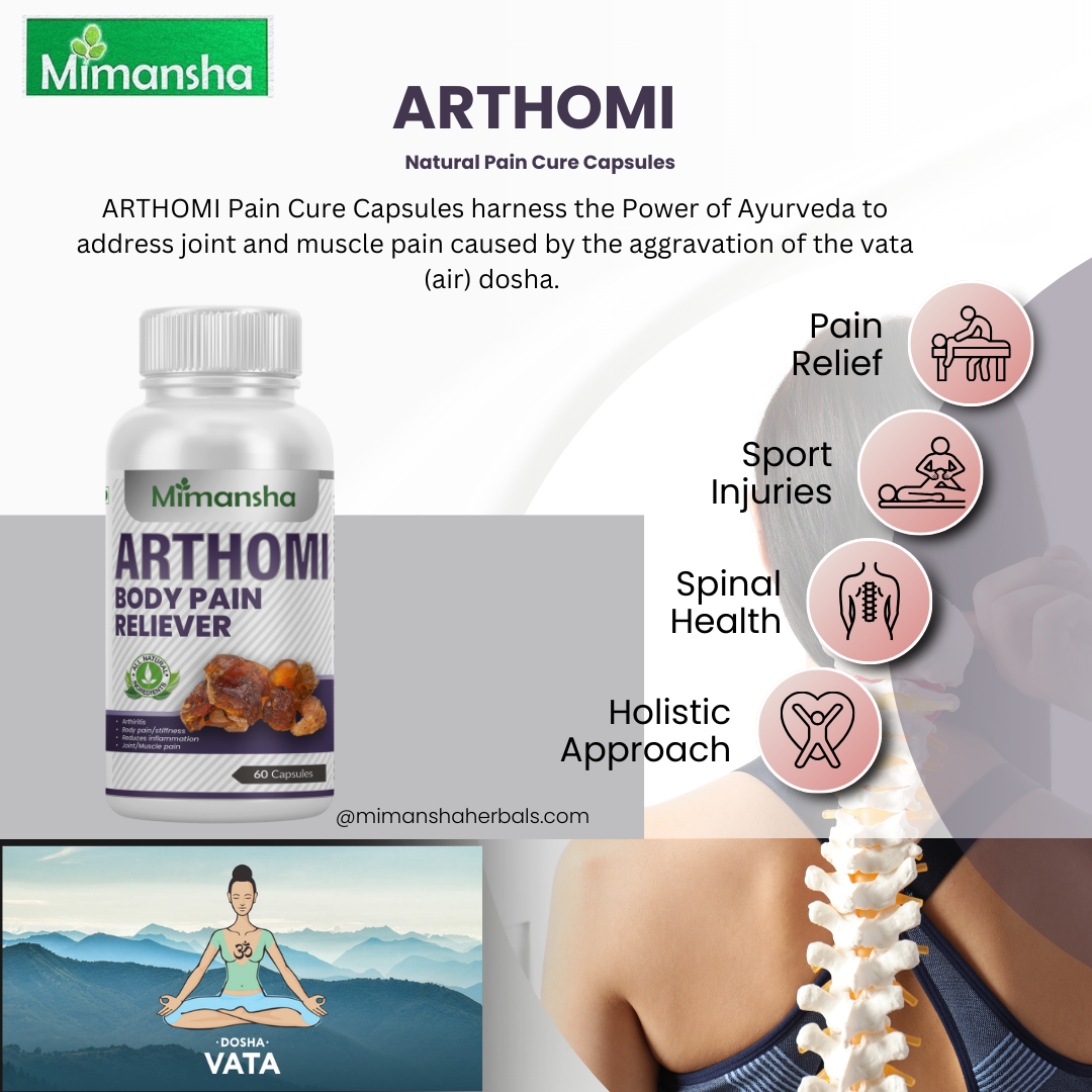 Are you tired of chronic joint pain, stiffness, and inflammation holding you back? Mimansha ARTHOMI Pain Cure Capsules are a powerful, scientifically formulated Ayurvedic solution designed to target pain at its source and restore your mobility.