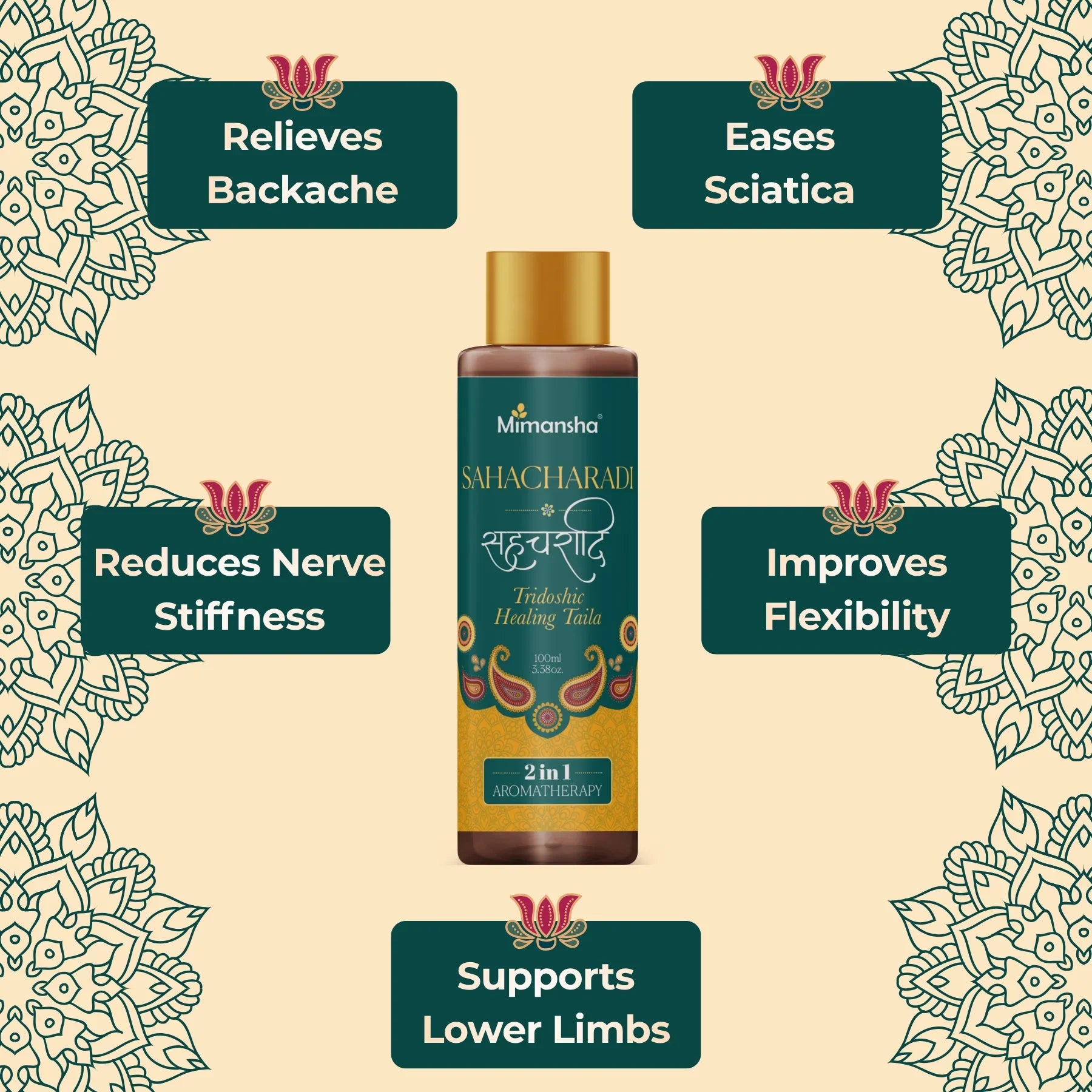 Sahacharadi Taila is a classical Ayurvedic formulation revered for relieving stiffness, sciatica, and pain in the lower limbs.