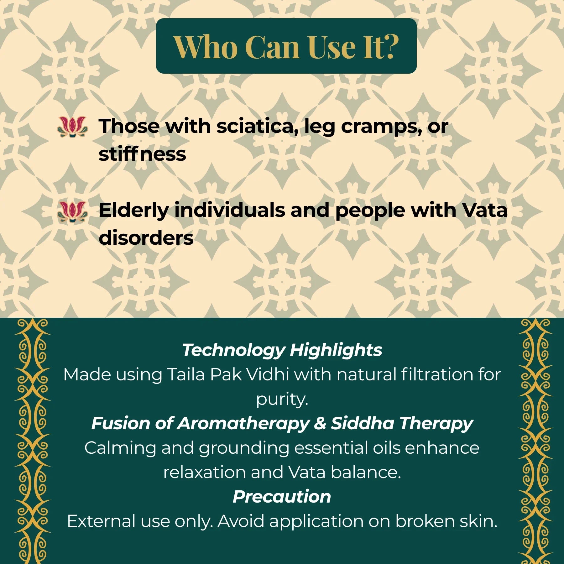 - Authentic Ayurvedic Sciatica Oil: Targets lower limb discomfort and Vata imbalance.