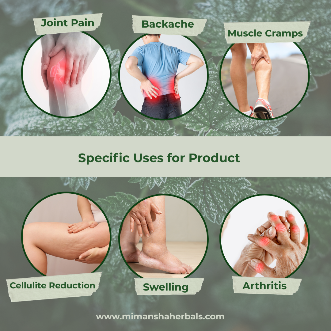 Reducing the inflammation and pain of arthritis, relieving back and leg pain, and relaxing muscle spa.